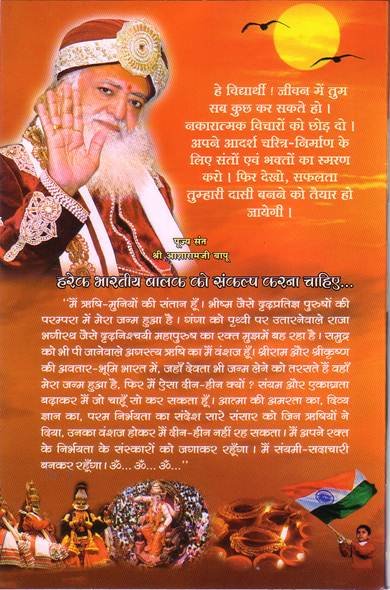 भारत को समर्थ राष्ट्र बनाना हो तो नयी पीढ़ी को बचपन से ही भगवन्नाम-जप, ध्यान, मौन, प्राणायाम आदि का अभ्यास कराओ। इससे उनकी बुद्धि एकाग्र होती है और भीतरी सुषुप्त शक्तियाँ जाग्रत होने लगती हैं। तुम विश्वासपूर्वक इस राह पर कदम बढ़ाओ, मैं सफलता की जिम्मेदारी लेता हूँ।