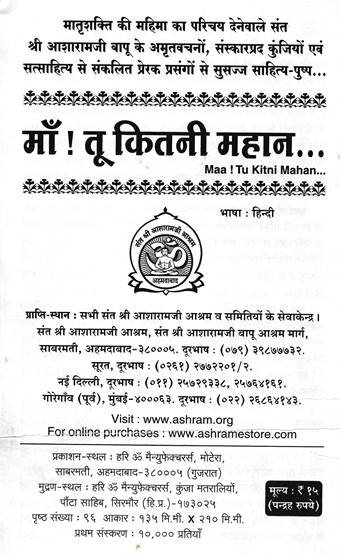 वर्तमान समय में पाश्चात्य कल्चर के दुष्प्रभाव से हमारी संस्कृति की संस्कार-सरिता पर कुछ काई-सी छायी नज़र आ रही है, ऐसे में माताओं-बहनों के लिए पूर्व की महान माताओं की शिक्षाएँ एवं आचरण आदर्शरूप सिद्ध होंगे। महान माताओं द्वारा अपनी संतानों में किये गये सुसंस्कार-सिंचन के प्रसंगों आदि से ओतप्रोत यह पुस्तक आपके करकमलों में देते हुए हमें हार्दिक प्रसन्नता हो रही है। महिलाएँ इस पुस्तक का लाभ लें तथा महिला उत्थान मंडल द्वारा चलाये जा रहे 'दिव्य शिशु संस्कार' वर्गों का भी लाभ लें तो सोने में सुहागा जैसा लाभ होगा।