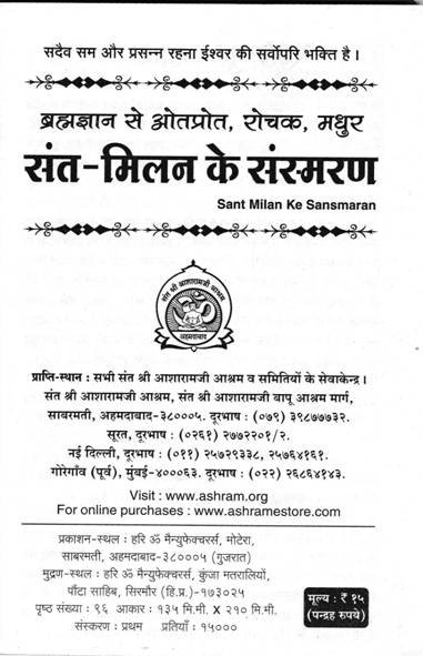 ब्रह्मनिष्ठ घाटवाले बाबा, योगसिद्ध नारायण बापू, संत लाल जी महाराज, पथिक जी महाराज जैसे मित्रसंतों के साथ बिताये हुए समय को बापू जी ने अपने जीवन का सुवर्णकाल बताया है और उन अनमोल संस्मरणों को कोई बार ताजा किया है। बापू जी व्यापक रूप से समाज के बीच आये, उससे पहले की उनकी मधुमय यादगार यात्रा के सुनहरे पलों के कुछ अंश यहाँ साहित्य में प्रस्तुत कर रहे हैं। इन संस्मरणों के रसपान से यह सुस्पष्ट होगा कि संत-समागम की अनेक लौकिक-अलौकिक घटनाएँ पूज्य बापू जी को साक्षात्कार के लक्ष्य की ओर सतत अग्रसर करती रही हैं और परमात्मप्राप्ति के बाद भी पूज्य श्री के जीवन में समाधि-सुख से भी विलक्षण एवं विशेष ऐसा ब्रह्मानंद छलकाती रही हैं।