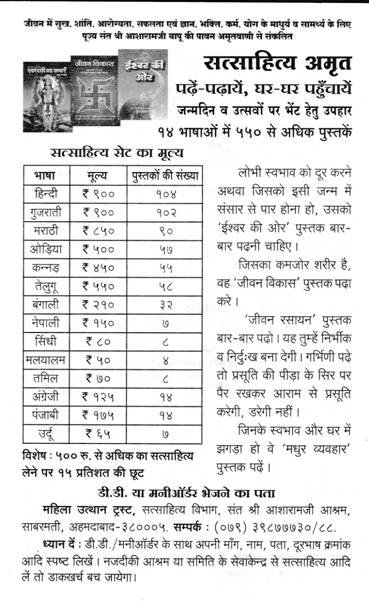प्राप्ति स्थान- सभी संत श्री आशाराम जी आश्रम व समितियों के सेवाकेन्द्र।